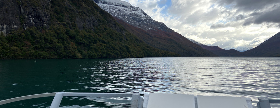 April 3, from the itinerary: Glaciar Vspigniani - full day, easy. Elevation gain - 600 feet, length 3 miles. We take a van 45 minutes from the lodge to the south shore of the Desierto Lake. from there, we cross this historical lake while enjoying the view of the Vespigniani Galcier - 20 minutes. We land on the northernmost tip of the lake and tak a not so rugged track through the forest, reaching some of the most unexplored parts of this area. We reach the southern edge of the lake and finalize the exploration taking a van back to the lodge