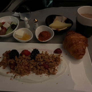 Mandatory menu and food pictures of uninspiring food. That said - they had the same champagne as we had at dinner 2 nights ago….