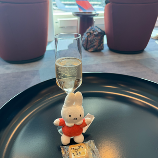 I hung out at the airport and the lounge. Nice salads, but no sparkling wine! I ended up with sweet cider - not my favorite.