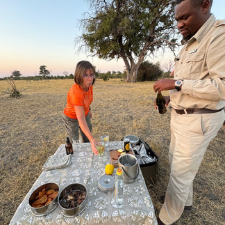 As the sun went down we stopped for a drink and a snack. The snack was beef biltong which tasted too gamey for my liking, and dried pears. I tried Botswana lager which was not to my taste and I switched to cider with ice