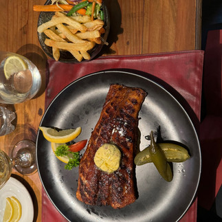 We walked to dinner at Miller’s Thumb. I had a salad, then blackened Kob Fish and the ice cream tower with carmel sauce (thank goodness I had some help with that….)