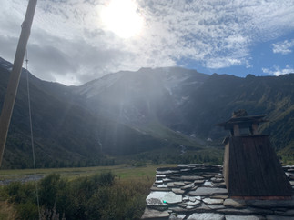 Today is a challenging day with plenty of ups and downs. From St Gervais we have a 10 min transfer to re-join our route before ascending to the Chalets de Miage (1560m – 5120ft). From here we take a trail that climbs steeply to the Col de Tricot (2119m – 6950ft) before descending very close to the snout of the Glacier de Bionnassay. Good views of the north side of the Mont Blanc Massif. Eventually we make another ascent to reach the Col de Voza (1652m – 5418ft) where we re-enter the Chamonix Valley and make our final descent to the village of Les Houches (993m - 3225ft). 8.5 hours walking time including breaks and lunch etc. 1200m – 3980ft up, 1370m – 4500ft down, but my watch said 4511 feet in elevation gain.