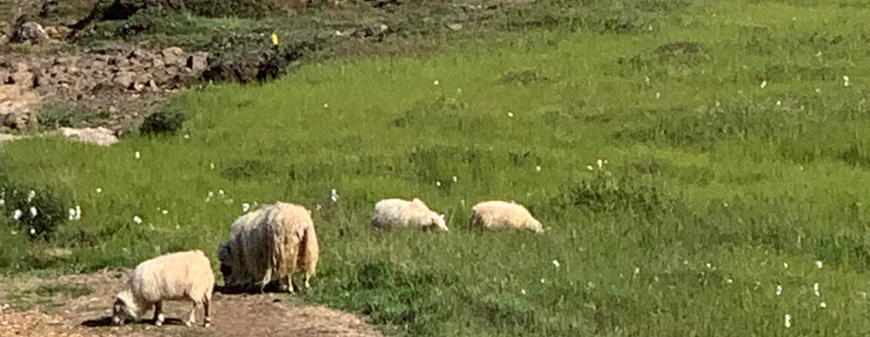 I drove through town to the hiking path that took me past the harbor and over to the trail for the Vestdalsfossar series of waterfalls. I was about half a mile from the car and encountered several sheep along the trail line. They were in need of a trim.