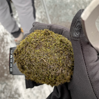 From the "gear on" point it was up further, this time on ice and the path was well trodden by this point - read slushy and slippery - so I wasn't looking forward to coming down and was grateful for the ice ax. We made our way up to the high point. Along the way we found moss balls called glacier mice.