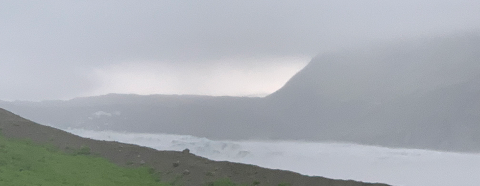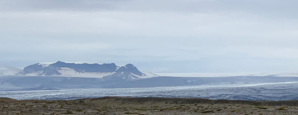 Today was a big and good day featuring lots of ice. The weather is overcast, but there are still good views and little rain. The roads now have changed from washboard gravel to a sort of primitive blacktop. They aren't fully formally paved, but a lot better than they were. I wind through areas with the sea to my left and mountains to my right. At one point I go up a mountain and the switchbacks coming down are quite windy without barriers at the side of the road. It's as though they are paving this part of Iceland, but aren't quite done yet. Eventually I do get back to a fully paved road and I, and the car, are very happy to be over the worst driving part of the trip.