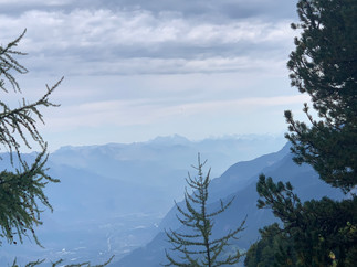 We leave the Col de la Forclaz, where we can look directly down into the Rhône valley and the Swiss town of Martigny and follow an historic path used to take the cows to high pasture, the 'Bovine route' (2049m – 6720ft). Our trail takes us through meadows and high alpine pastures before we descend to the charming town of Champex (1486m – 4880ft) set beside a picturesque alpine lake. 7.5 hours walking, 680m – 2230ft up, 720m – 2360ft down. I show we walked about 10 miles with an elevation gain of 2475.