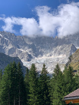 Now on the east side of the main Mont Blanc Massif we walk south, descending through woods to the Val Ferret and on to Issert (1055m – 3460ft) and other