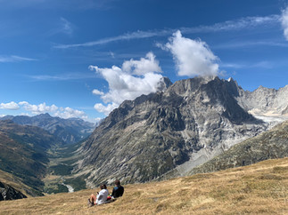 Still following the same valley and the river 'La Drance', we climb to the 'Grand Col Ferret' (2537m – 8320ft), the highest pass of the tour. Now in Italy, the valley is also called 'Val Ferret'. The mountain views from the Col are stunning with the Grandes Jorasses dominating the scene. We walk down the valley to Arp Nouva (1770m – 5800ft) then travel by bus to our hotel in La Palud near Courmayeur. (BLD)7 hours walking, 970m - 3180ft up, 800m – 2600ft down. The actual miles/elevation gain tracked: