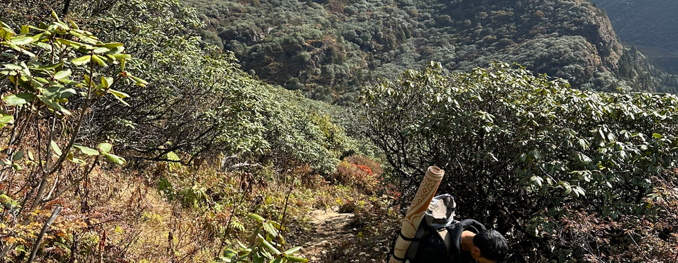 October 17, 2023 - Jigmelang Tsho/ Tshokam From the itinerary: From Camp, climb steeply on a rocky trail and walk north for about 10 minutes on the ridge with beautiful views before disappearing into a rhododendron forest. Cross over to the easterly side of the ridge at 3700 m/12,135 ft. Go up and around a small peak, a steep 100 m ascent to an altitude of 3750 m/12,300 ft. To the south, the Dagala range is visible (another trekking area). An hours climbs from here and you will reach your campsite at Tshokam which is actually a yak herders settlement, is just after a small saddle. Today’s hike will be approx. 10 kms and will take about 6 -7 hours to complete. Spend one night at Tshokam Campsite which is at 3,962 m (12,995 ft). Your accommodation will be in a Standard tent on full board (breakfast, lunch and dinner) basis.