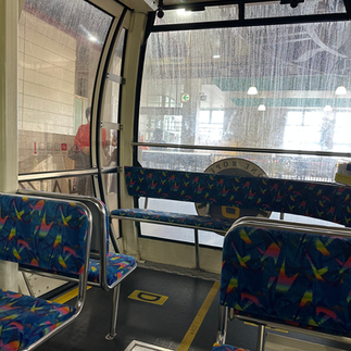 Here is a photo of my route for the day - blue arrow is the train that took me to the first sort of windy train (green train). The yellow arrow is the funicular they call a cable car and shift to a a ski lift they call a rope way over the volcanic valley to the red arrow - the cruise across the lake. Then the purple arrow is the bus that took me back to my hotel.