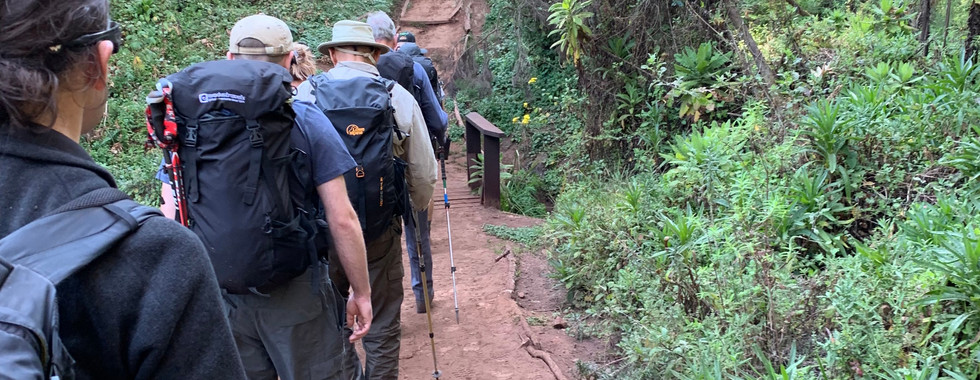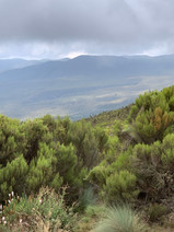 From today's itinerary (August 31, 2019): The trail starts out in the lush rich mountain forest before ascending into the moorland zone of giant heather. The trail climbs steadily with views across the plains opening out as we reach the rim of the Shira Plateau. There is a tangible sense of wilderness especially if the afternoon mists come in. We camp in the centre of the plateau at Shira One (3550 m). Approx 6-7 hours walking (4 miles).