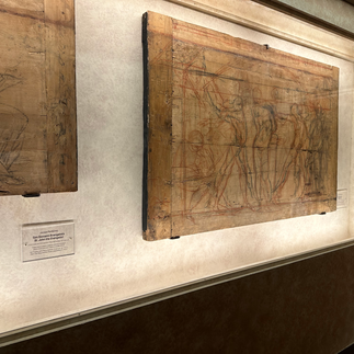 Really on my last legs, we went to the Basicilica di San Lorenzo to see Donatello's last works and grave, as well as Cosimo Medici's. It is one of the largest churches in Florence and the burial place of all the principal members of the Medici family from Cosimo il Vecchio to Cosimo III. It is one of several churches that claim to be the oldest in Florence, having been consecrated in 393 AD,[1] at which time it stood outside the city walls. For three hundred years it was the city's cathedral, before the official seat of the bishop was transferred to Santa Reparata. There was a lovely chapel right out of a Dan Brown book - the dome was painted with astrological figures - science juxtaposed with religion. The same ticket got us into the Laurentian Library where we saw the wonders of their treasure room. The library was based on Michelangelo's designs.