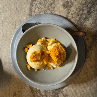 Dinner was a similar menu. I forgot to say there is always an “amuse bouche” at the beginning and a palate cleanser before the main- so 5 courses every night. The bread was cheese bread. This time I was a bit smarter and only had the 3 oysters and some ostrich without the rest of the accompaniment. I did have to have the honey ice cream
