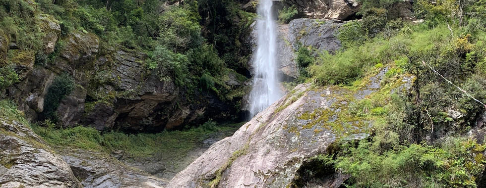 about half way to Namche Bazaar we stop at a tea house for lunch. It's a lovely stop just after a waterfall. Some people were keeping rabbits - I don't want to know why and the hutch was too small:(