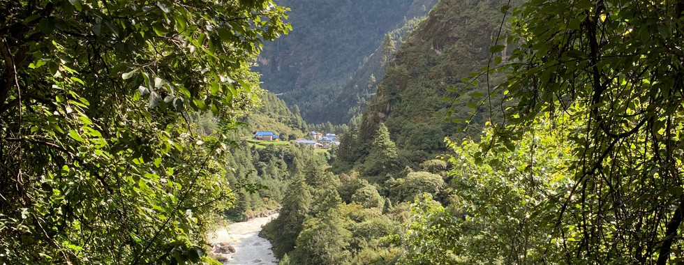From the Itinerary 23 September, 2019: Follow the Dudh Kosi and ascend to Namche Bazaar, with time to explore the Sherpa villages Heading out of Phakding we follow the Dudh Kosi northwards. This day's walk takes us through magnificent forests with glimpses of the mountains ahead. We cross the river several times by bridges as we pass through the villages of Benkar, Monzo and Jorsale. A final bridge brings us to the foot of the steep climb to Namche. Halfway up this ascent, we may get our first glimpse, cloud-permitting, of the summit of Everest appearing majestically behind the great ridge of Nuptse-Lhotse. A last 300m of climbing brings us to Namche Bazaar, the Sherpa capital and the main town in the area. Namche is a prosperous Sherpa town and an important trading centre. It has a weekly market on Friday afternoon and Saturday morning but the town bustle all day every day with trekkers, coffee shops, bakeries and stores selling all kinds of trekking and climbing gear as well as Tibetan souvenirs. 9 miles and 790 M altitude increase.