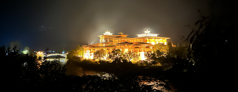 Oct 12 from the itinerary- You will be chauffeured to Delhi airport to board your flight to Paro. This morning, board your flight to Paro (By Druk-Air KB 201 DEP 12H30 ARR 15H20), Bhutan’s only international airport. The flight into Bhutan takes you close to the great Himalaya, offering dazzling scenic views of some of the world’s highest glacial peaks. As you enter the Paro valley, you will pass forested hills with the silvery Pa Chu (Paro River) glistening below, the Paro Dzong (fortress) and Ta Dzong (watch tower) on a hill above the town. As you exit from the arrival hall of Paro airport, you will be met by your guide and chauffeured to your hotel in Punakha (3 hours’ drive). En- route stop to visit the Tamchog Lhakhang; built by Thangtong Gyalpo, a pioneering engineer who introduced the construction of suspension bridges into Bhutan and Tibet. It is believed that more than 58 bridges were built across the country however only 2 have survived. One of these bridges still stands strong at the base of the Tamchog Lhakhang. Marvel at the iron bridge reconstructed using original chain links. Once the capital of Bhutan and the seat of government, Punakha is the heart of some of the most important moments in Bhutanese history. The very first National Assembly was held here in 1953, and in 2011 the royal wedding between King Jigme Khesar Namgyel Wangchuck and Queen Jetsun Pema took place in Punakha Dzong. Popular amongst travellers, this district of the Dragon Kingdom is located at an elevation of 1200 m (3937 ft) above sea level. It is a rich agricultural area producing local rice, vegetables and fruit from its many orchards. Two of Bhutan's precious rivers converge here, the Mo Chu and Pho Chu, and at their confluence stands the majestic Punakha Dzong. The river banks of Pho Chu, are home to the last surviving populations of the critically endangered white-bellied herons. Drive onwards to your hotel for check-in and rest.