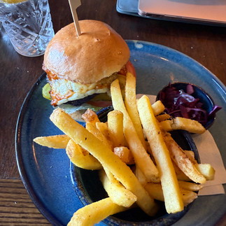 Dinner was in the bar - beetroot hummus and a truffle bacon burger. It was good.