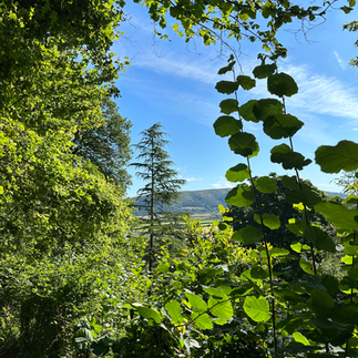 Beautiful woodland which undulated up to pastureland with lovely views of the sea over to Wales. I was going to lunch at Sugarloaf but didn't find the pathway up until after lunch and it was very overgrown- something for another day. I continued on crossing several more small streams- one of which was the border into Devon.