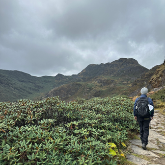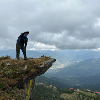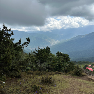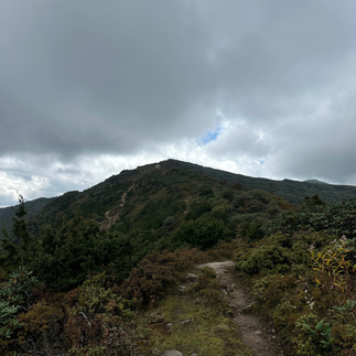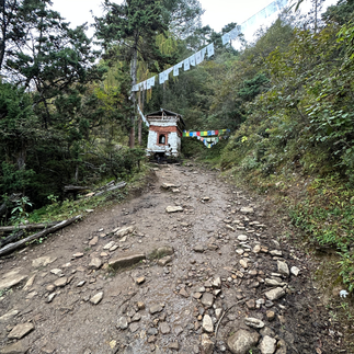 Day 5: 15 October 2023 (Sunday) - Thimphu/ Labana (Druk path) After an early breakfast, drive to the starting point of the Druk path trek above the Takin Preserve. You will start your hike at about 2,430 m (7,972 ft). As you ascent, you reach a big split in the trail, one trails heads back towards the Buddha Dordenma and the other is the main trail that connects Thimphu and Phajoding. You will continue ascending on this trail, which eventually opens up at Phajoding monastery complex which is at 3,640m (11,942 ft) and the vegetation give way to junipers and dwarf rhododendrons. Stop for lunch at Phajoding monastery (4 kms, 3 hours hiking time). Post lunch, continue hiking to Labana (6.6 kms, 2.5 hours hiking time). The climb from Phajoding will then take you over Pumo La which is at 4,210 m (13,812 ft), the highest pass for today with a beautiful view of Thimphu valley. The pass is marked by an array of prayer flags and a small chorten. On a clear day we can see the Gangkhar Puensum, which is the highest peak in Bhutan. Descending further from the pass you will reach your campsite at Labana. Spend one night at Labana Campsite which is at 4,100 m (13,451 ft).