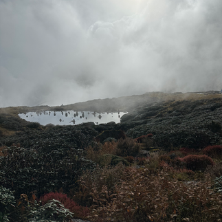 we descended through a forest of rhododendrons and silver leaf pine trees