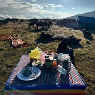 Our guest left early - at about 6am - and was able to make it in time to connect with her friends at the monastery. As the sun rises the views start to reveal themselves. This lake is Itso which means "hidden lake"