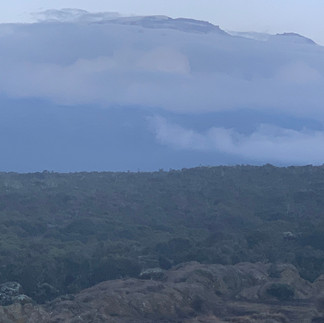 Going up to Shira Cathedral there were route signs along the way and a lot of scrubby plant life. The weather was wonderful, but by afternoon clouds moved in and created some wonderful views.