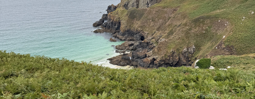 Fantastic views from Zennor Head to Pendour Cove below. You may be able to see dolphins from here. The field systems in this area date from the Bronze Age and are still farmed sensitively so as to enhance wildlife and protect historic features.